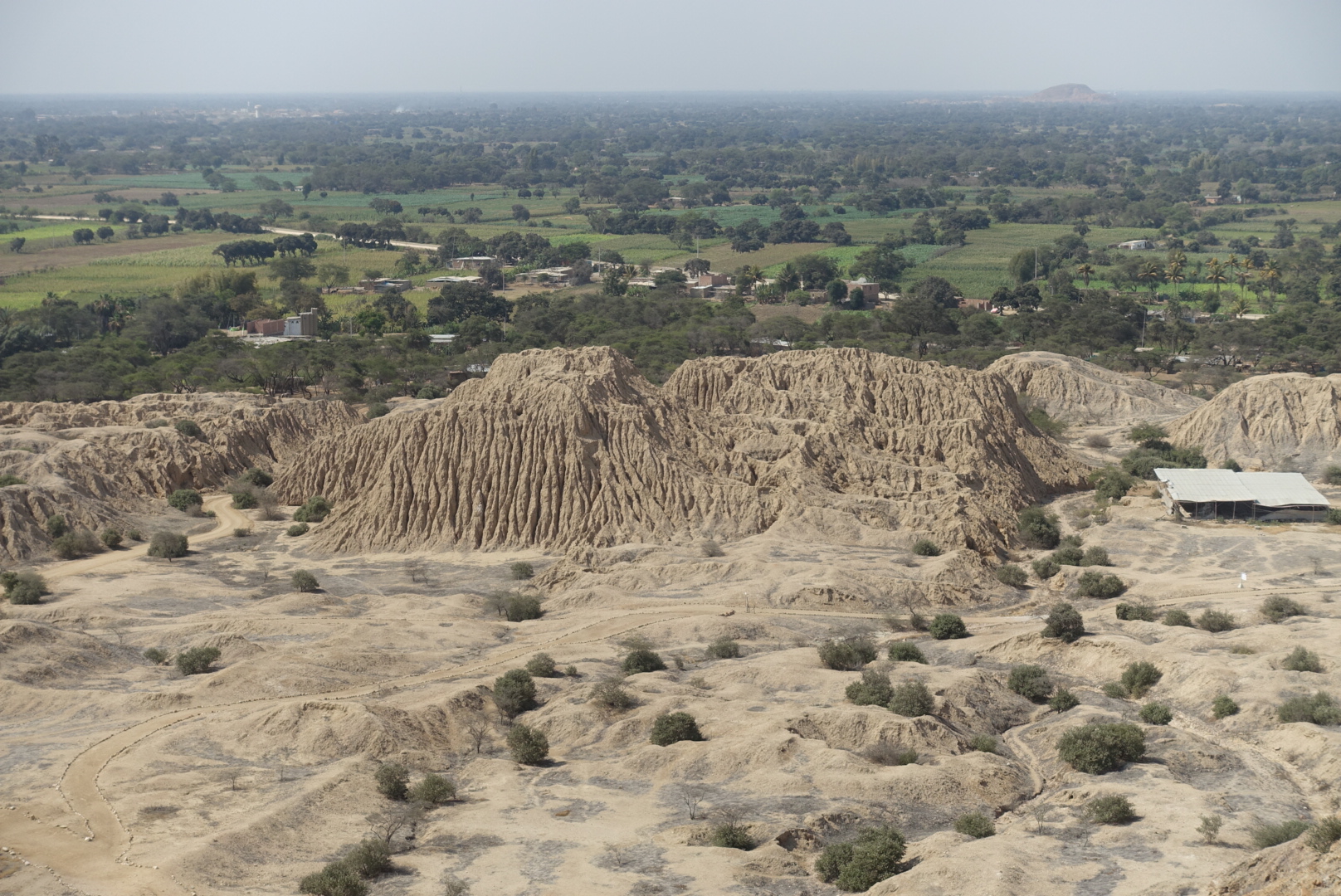 Túcume est une ville où se trouve un complexe d’anciennes pyramides construites par le peuple Lambayeque (comme le nom de la ville de la veille) entre le IXème et le XIVème siècle. La cité fut ensuite contrôlée pendant un siècle par le peuple Chimú, puis un siècle encore après par les Incas. Les briques des pyramides étaient faites à base d’argile, et par conséquent l’érosion a beaucoup rongé les nombreux temples du site.