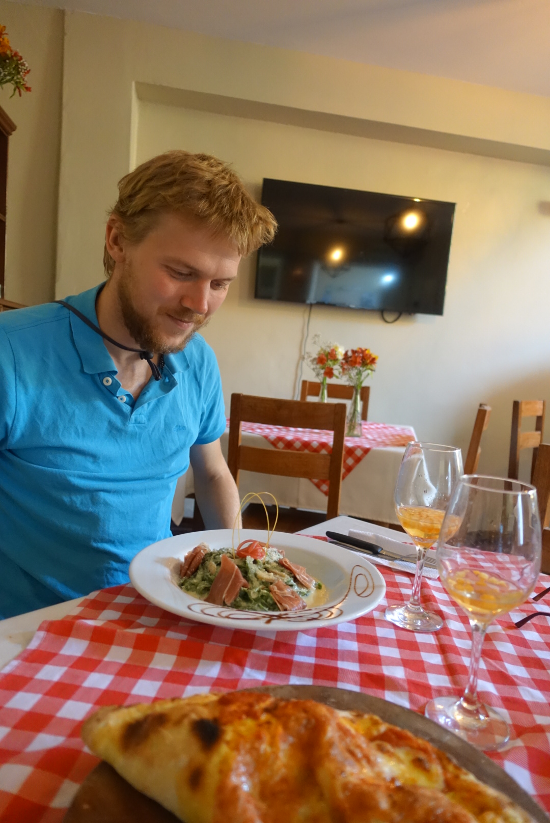 Nous arrivons enfin à Trujillo vers midi. Arrivés à l’hôtel, nous prenons une bonne douche et faisons une petite sieste pour récupérer. Puis nous sortons manger dans un petit restaurant dans le centre tenu par un expatrié italien. Alizée commande sa traditionnelle calzone et PJ prend des pâtes au prosciutto, champignons et crème au vin blanc. S’ensuit une petite balade digestive dans les rues de Trujillo.