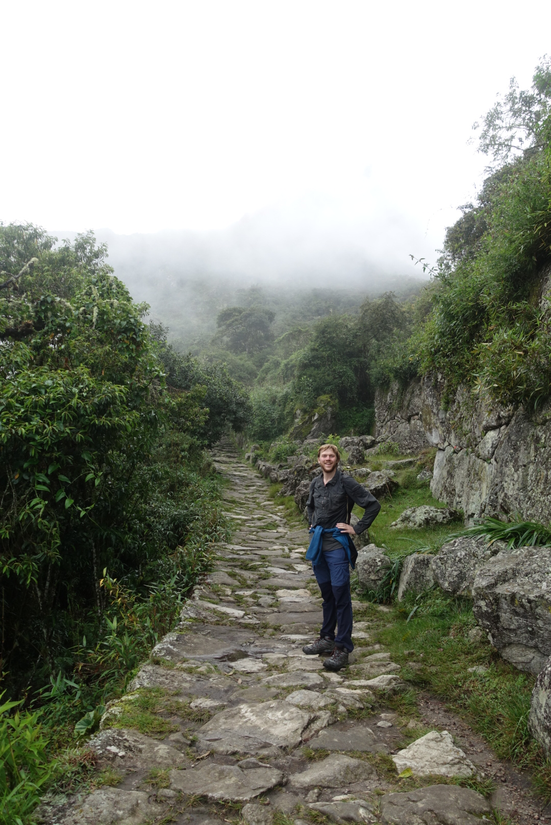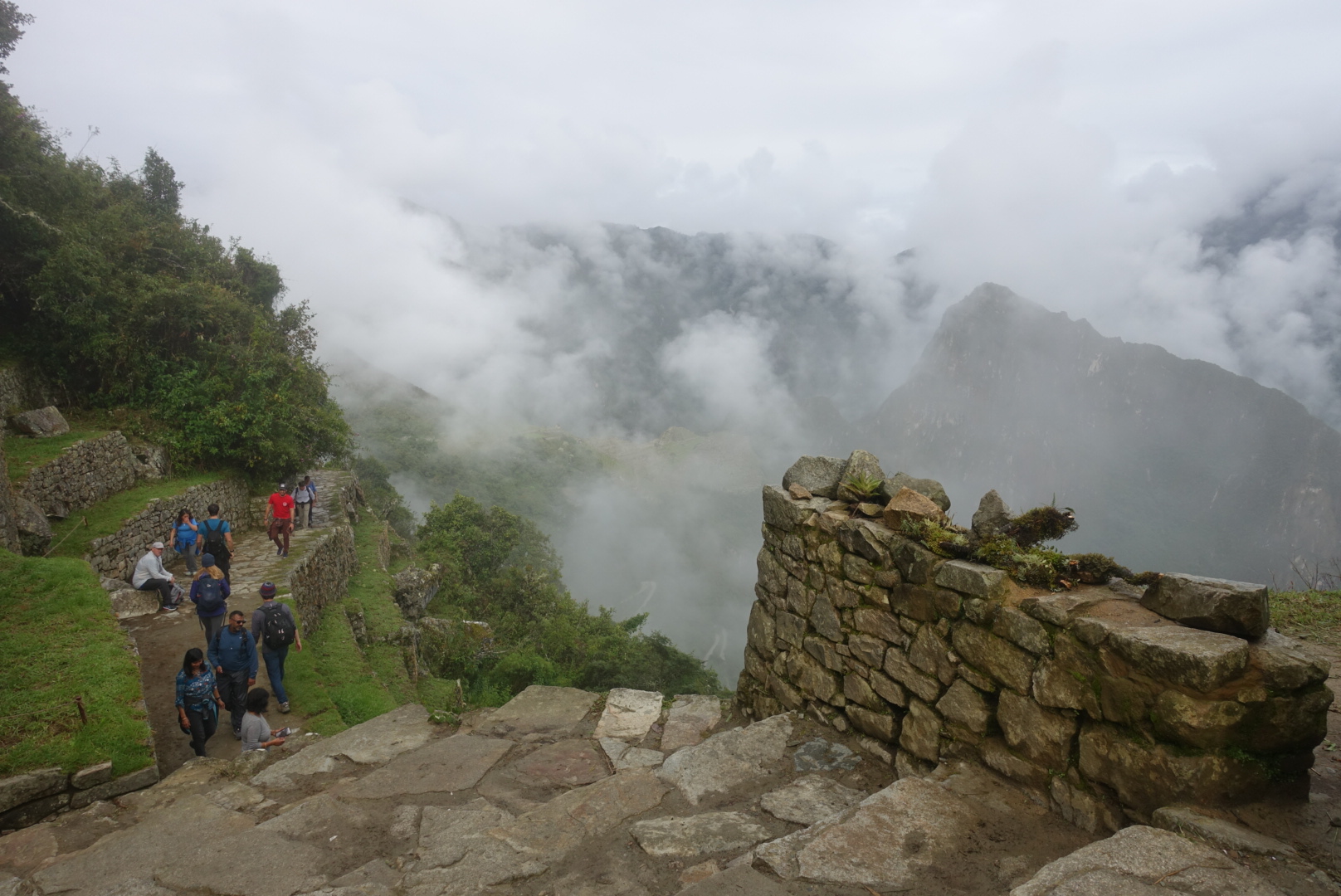 Les Incas aimaient bien construire à flanc de montagne. Des chemins d’un mètre de large longent la paroi rocheuse. De l’autre côté du chemin, une falaise abrupte de plusieurs centaines de mètres.