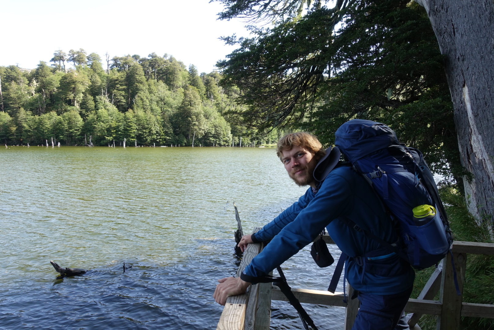 Nous entamons notre randonnée par le Sendero de la Playa (sentier de la plage) qui longe le lac Conguillio. Puis nous empruntons le début du sentier de l’ascension du Sierra Nevada. Celui-ci monte à travers une jolie forêt tempérée qui compte ça et là quelques araucarias. Le chemin nous mène à de magnifiques points de vue sur le Lac Conguillio, notamment au Mirador del Condor. Les Sud-américains adorent dédier leurs plus beaux points de vue au condor, mais jamais nous ne voyons cet oiseau emblématique à l’état sauvage …